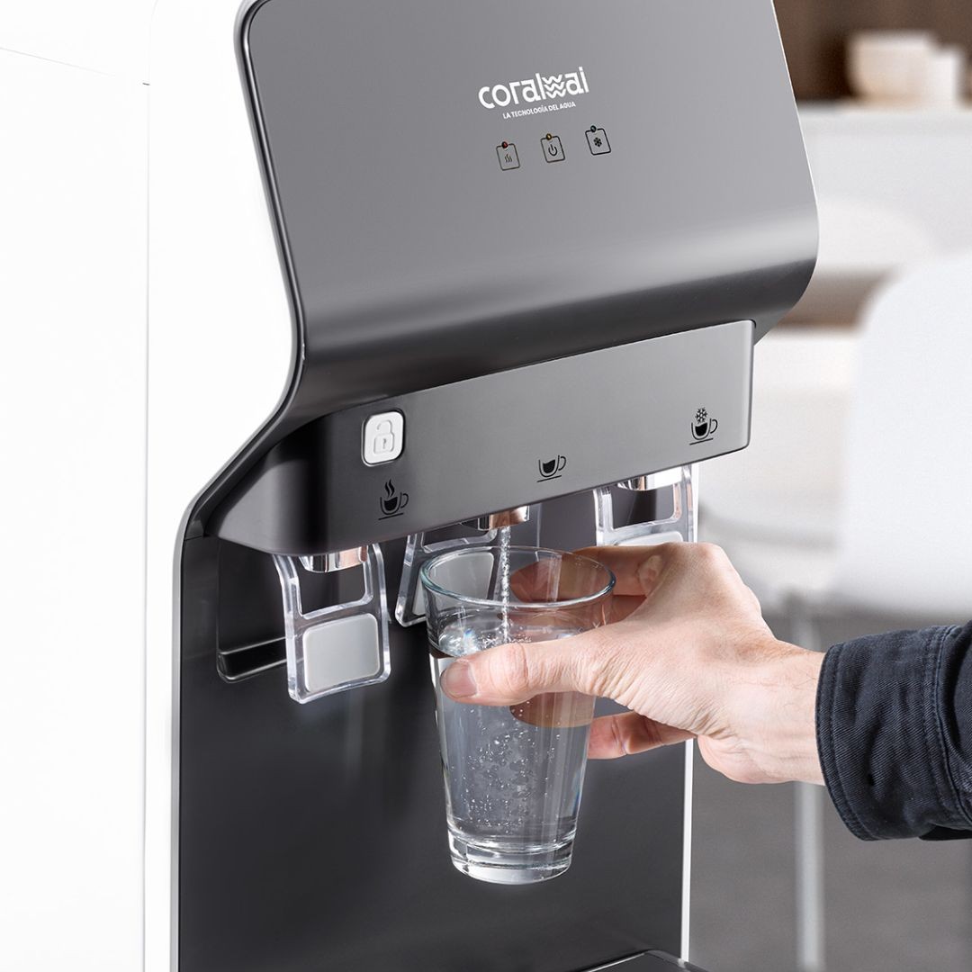 Con diseño sofisticado para que disfrutes de agua fría, caliente o de ambiente con un solo click. Su depósito total es de 5l y contiene un regulador de presión.