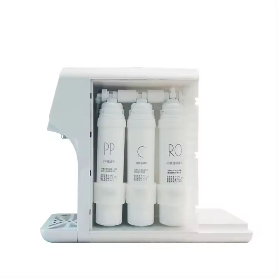 Descubre la conveniencia y superioridad del agua purificada con nuestro purificador de agua para escritorio con sistema de ósmosis inversa. Este modelo compacto, que no requiere instalación, es ideal para cualquier entorno, proporcionando agua pura y fresca directamente desde tu escritorio.